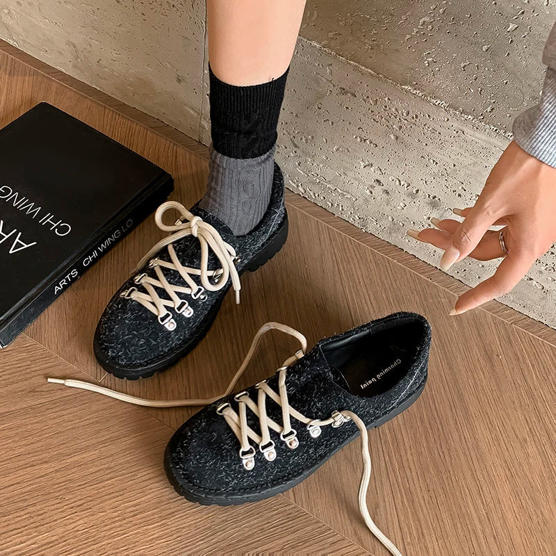 Prépare-toi à affirmer ton style avec les derby NOMAD 2025, le choix des femmes modernes et audacieuses ! Inspirées des tendances du moment et repérées sur les icônes de la mode, elles allient élégance et caractère. Leur cuir effet suédé, leurs détails raffinés et leurs coloris tendance apportent cette touche unique qui fait toute la différence. Un parfait équilibre entre charme rétro et modernité, pour un look qui ne passe pas inaperçu.